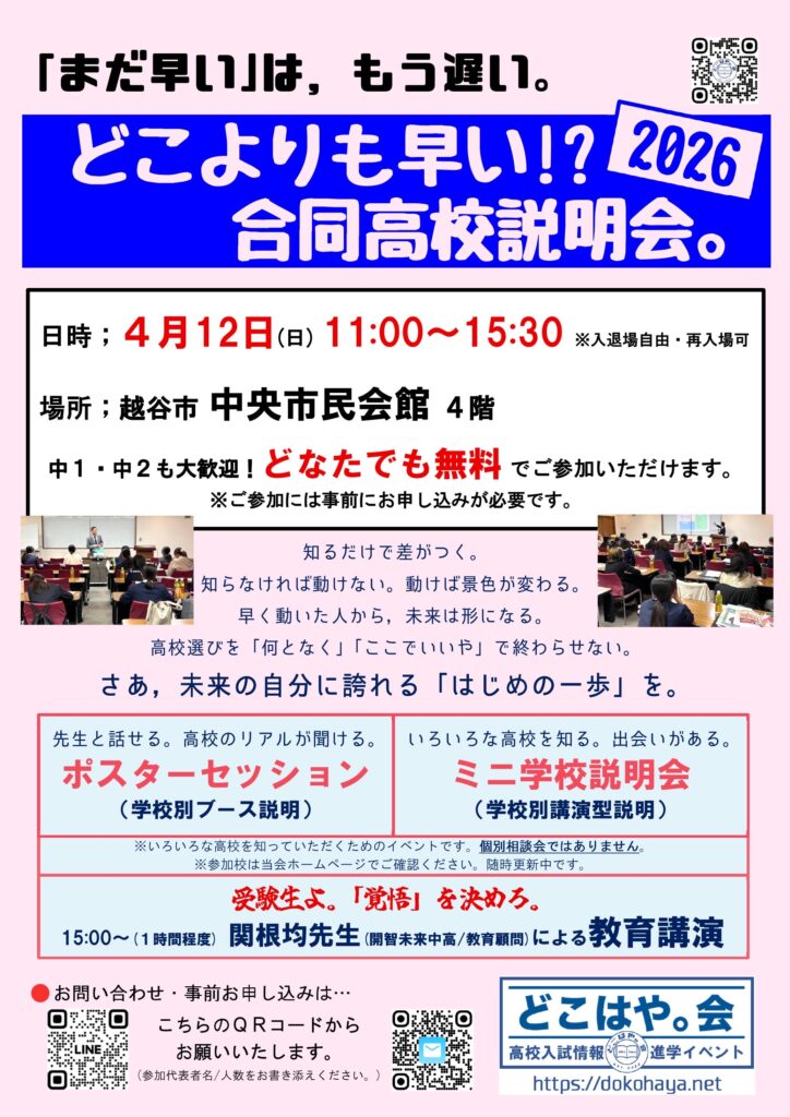嵐の前の静けさ。春日部の入試ファースト会場・ふれあいキューブのイベントスタート直前の1コマ。もちろん埜塾のスタッフもこの後戦闘体制に。
